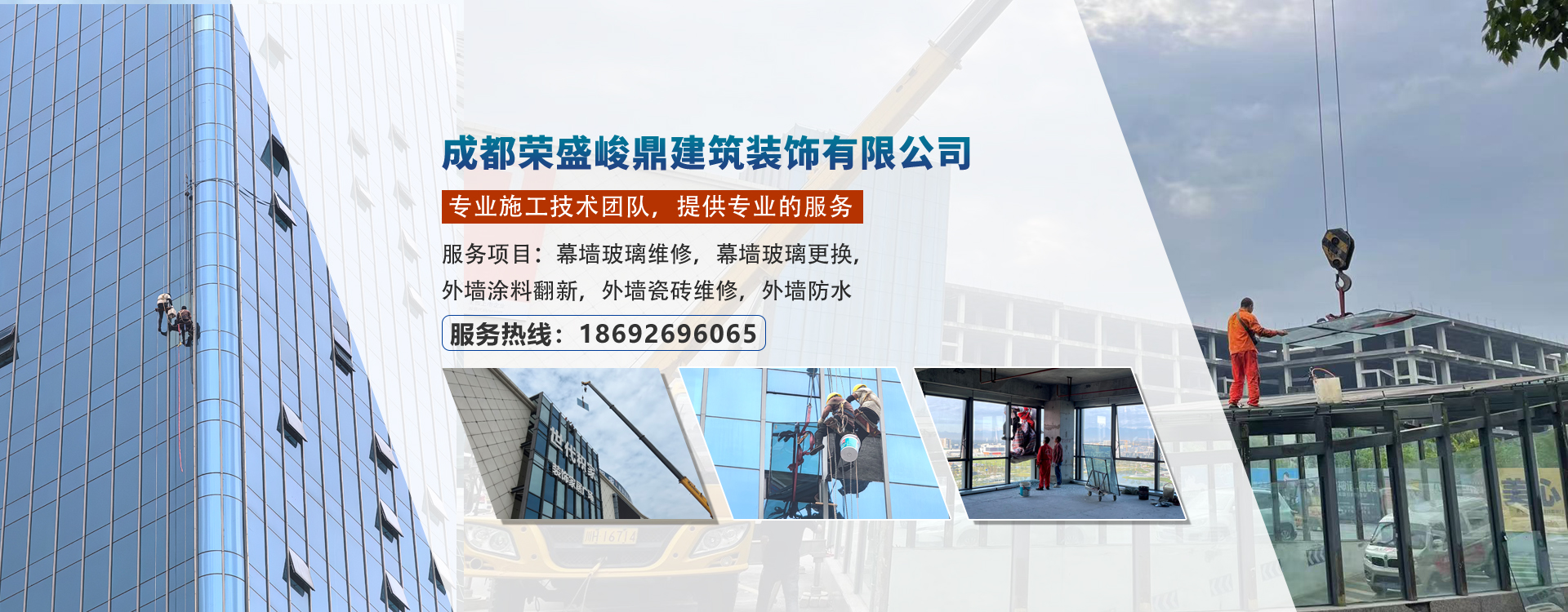 成都榮盛峻鼎建筑裝飾有限公司始終堅持發揚工匠精神的專業施工團隊,專業于舊建筑修繕翻新的研究與實踐;服務包括外墻維修、外墻翻新、外墻磚維修、外墻防水處理、內外墻涂料維修、幕墻玻璃維修、門...